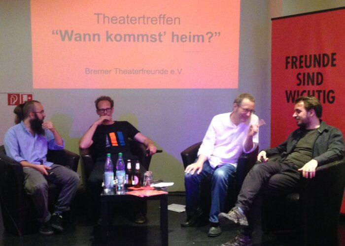 Die Bremer Theaterfreunde veranstalten seit Oktober 2000 die öffentliche Reihe TheaterTreffen, um mit Theatermacherinnen und Theatermachern ins Gespräch zu kommen.