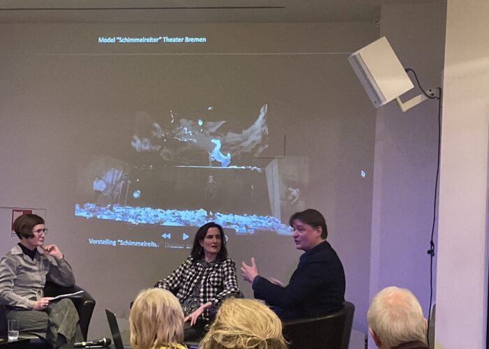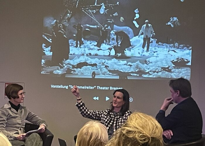 | 17.02.2025 | 220 | LA BOHEME. Alize Zandwijk - Regisseurin, Sasha Yankevych - Musikalischer Leiter, Ilse Stümpel - Mitarbeiterin Bremer Tafel und Theaterfreundin, spontan ergänzt durch Julian Arsenault - Sänger und Brigitte Heusinger - Dramaturgin |